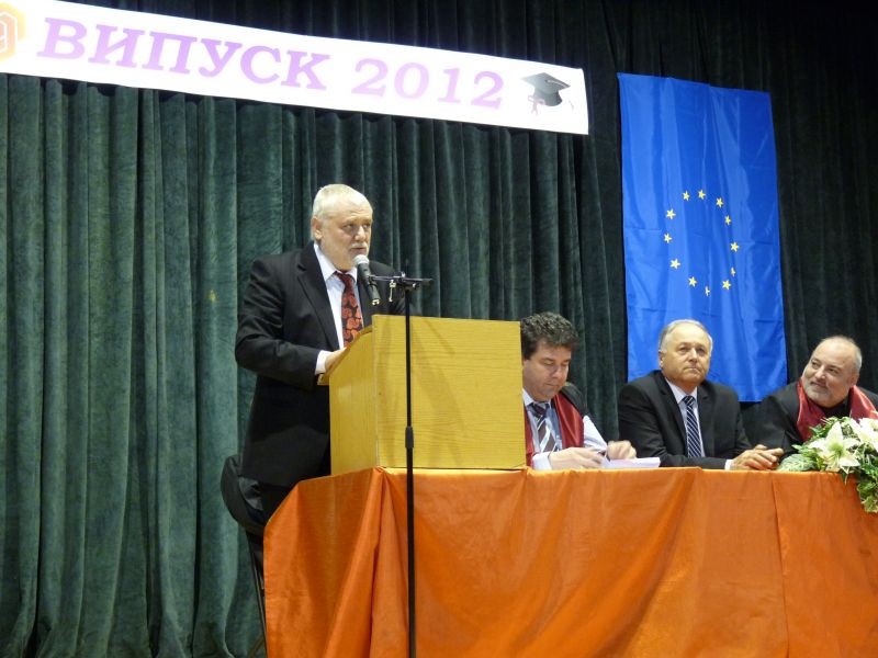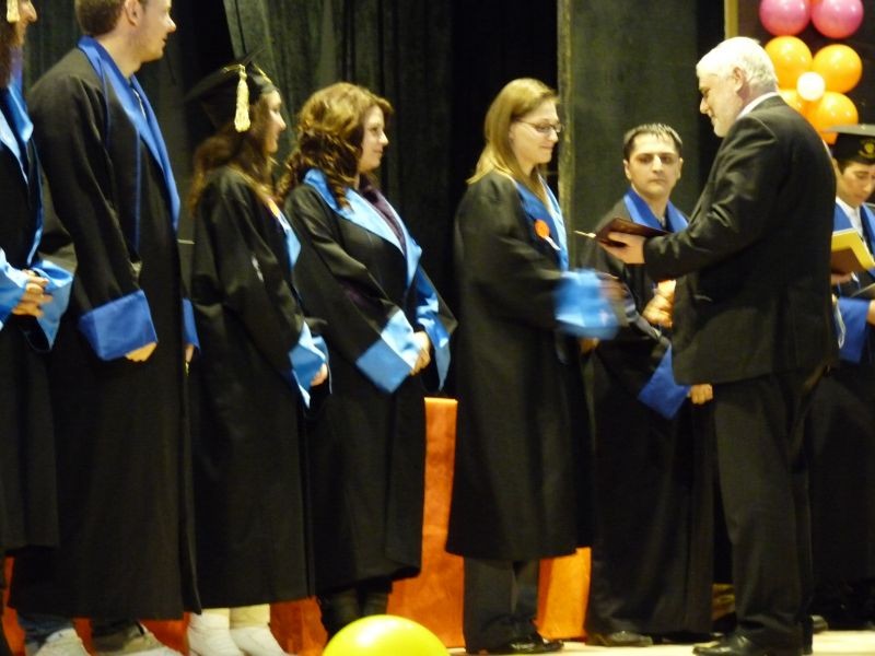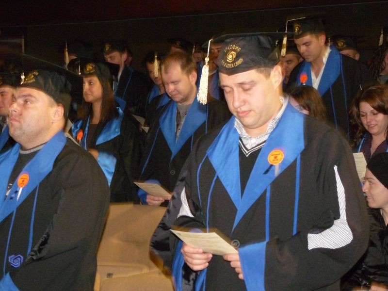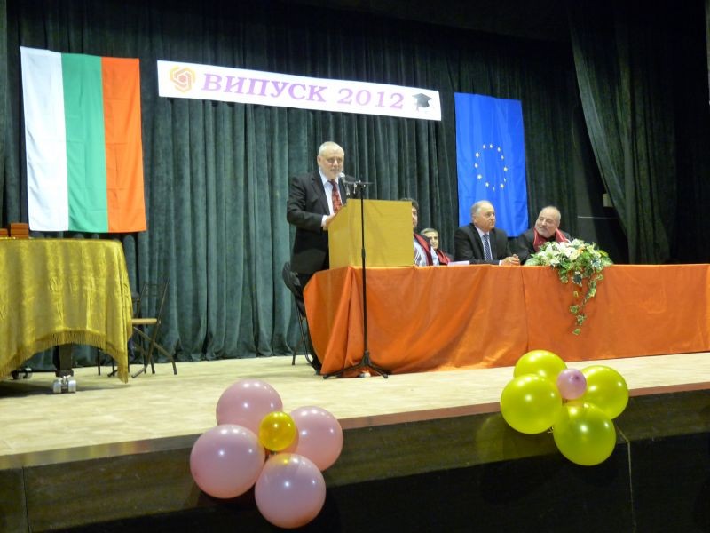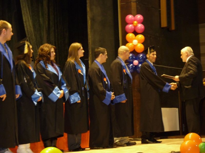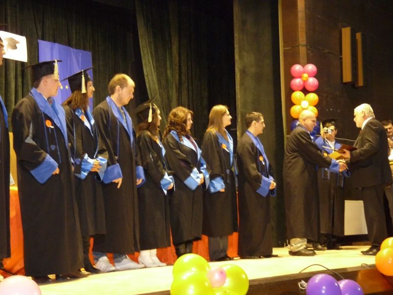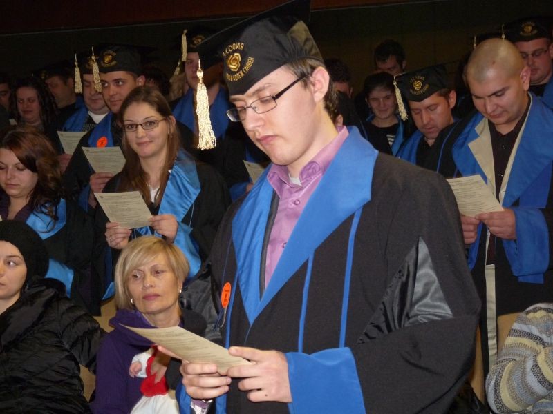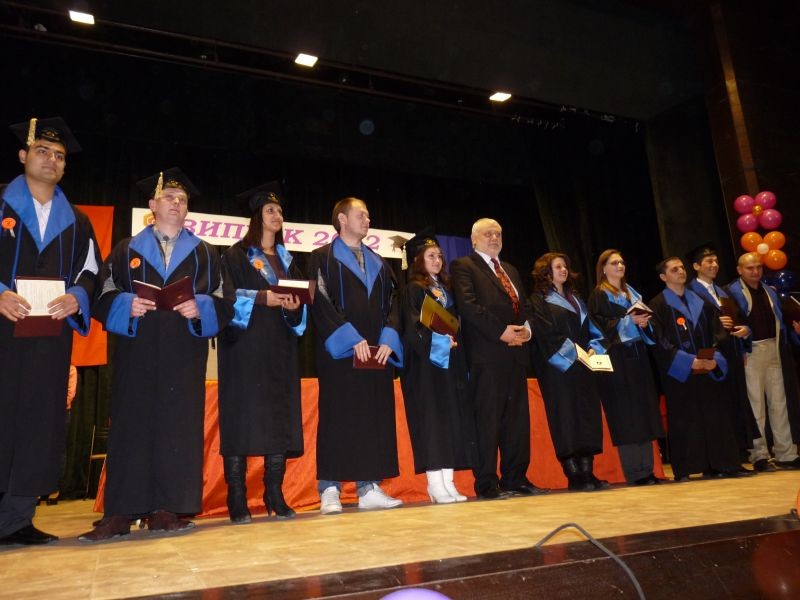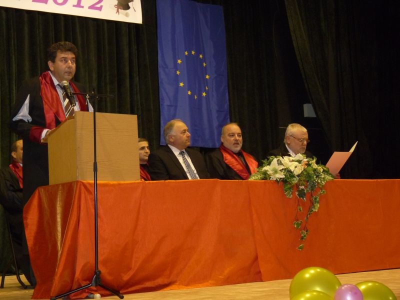 Г-н Пейчев поздрави абсолвентите, като им пожела на добър час и успешна реализация в техния житейски път, след което връчи поздравителен адрес на ректора и дипломите на част от завършващите студенти.