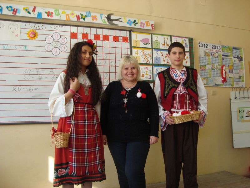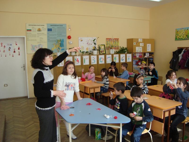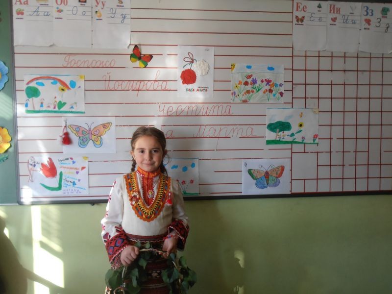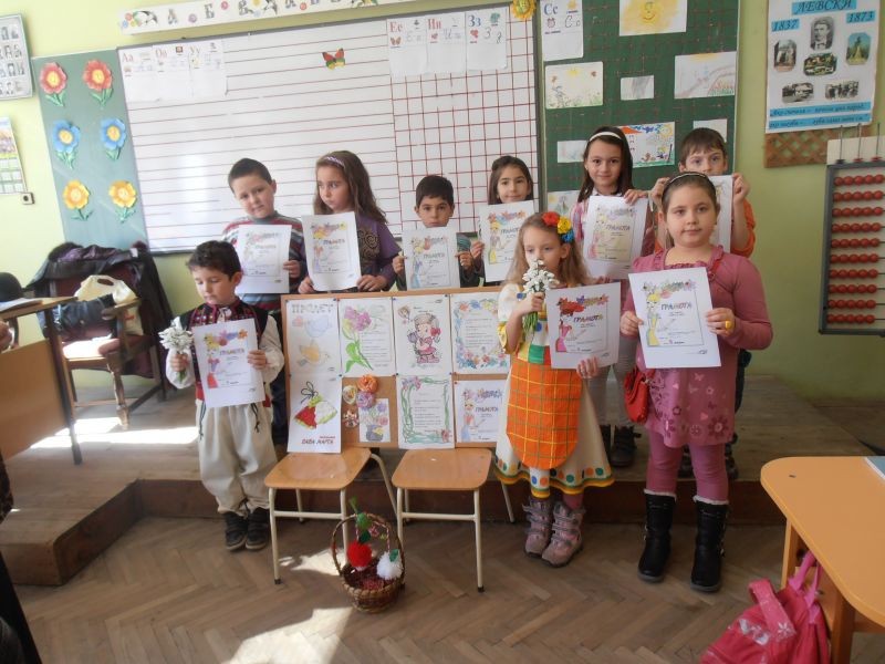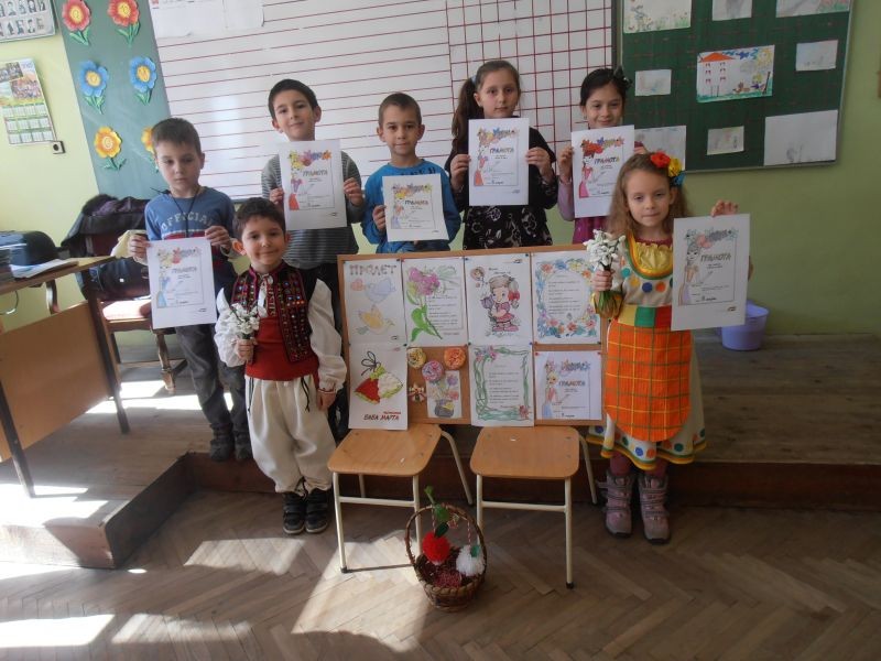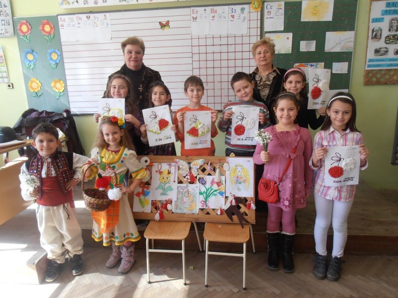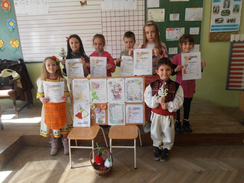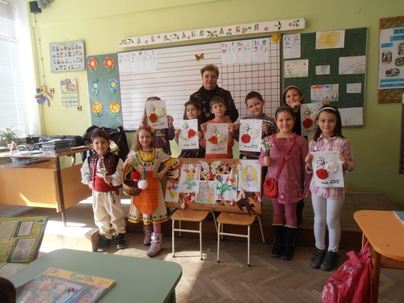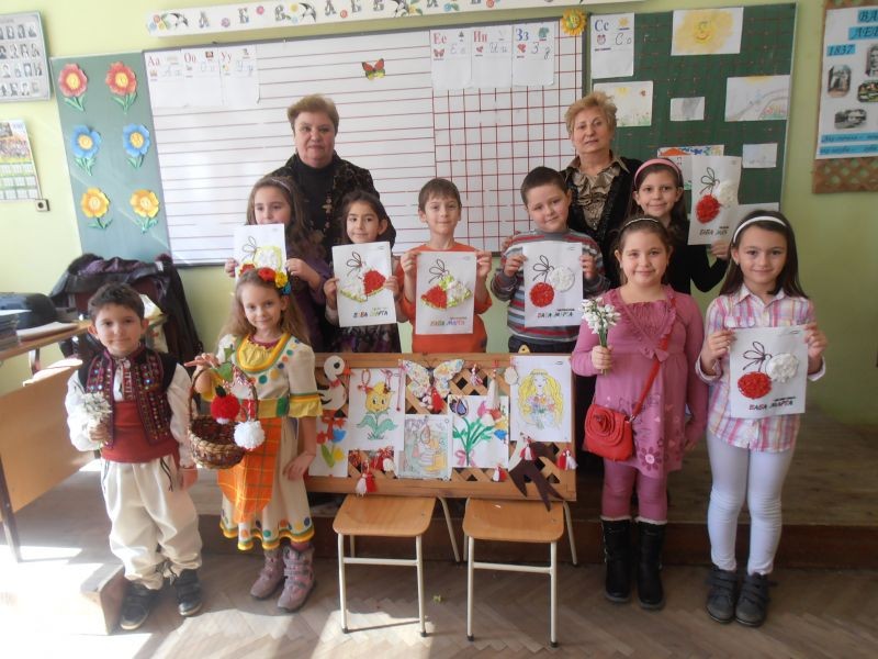 В последните февруарски дни първокласниците в часовете по изкуства се подготвиха за предстоящите мартенски празници. С много радост, старание и сръчност изработиха красиви мартенички, пролетни картички и грамоти за празника на мама. В първомартенската утрин класните стаи осъмнаха празнично украсени.