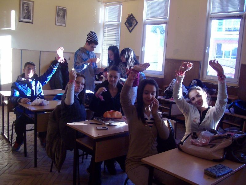 Членовете на клуб „Безвъзмездна помощ” от Хуманитарна гимназия "Д. Дамянов" към БМЧК отправиха пожелания за здраве, сила и късмет към своите съученици и учители по случай Баба Марта. По стар български обичай те им вързаха мартеница.
