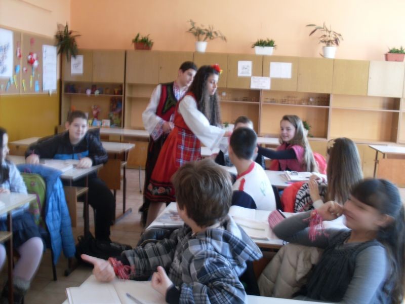 Госпожа Мурзова организира отново поздравяването на всички ученици и учители чрез подаряване на мартенички, изработени от учениците.