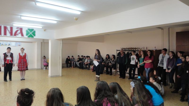 Първата мобилност по проект Коменски ще бъде в Република Полша. Учениците, които ще участват в тази мобилност от 17.03. до 21.03.2013г. представиха пред училищната общественост, ученици, учители и родители подготвените песни, сценки, стихотворения и традиционен танц. Получи се приятно тържество.Представиха и химна на партньорското приятелство. Анатолий, Силви и Хюлиа от 7"А"; Константин, Боряна и Елфуда от 7"Б" клас ще отнесат със себе си поздравите от цялото ни училище за приятелите от Полша, Румъния, Турция и Италия. Сигурни сме, че достойно ще защитят името на училището ни, на града и на страната ни.