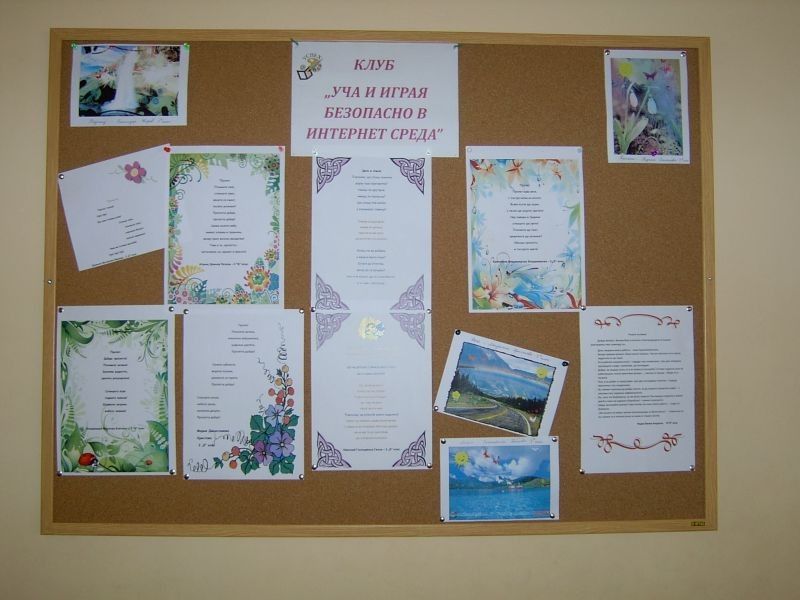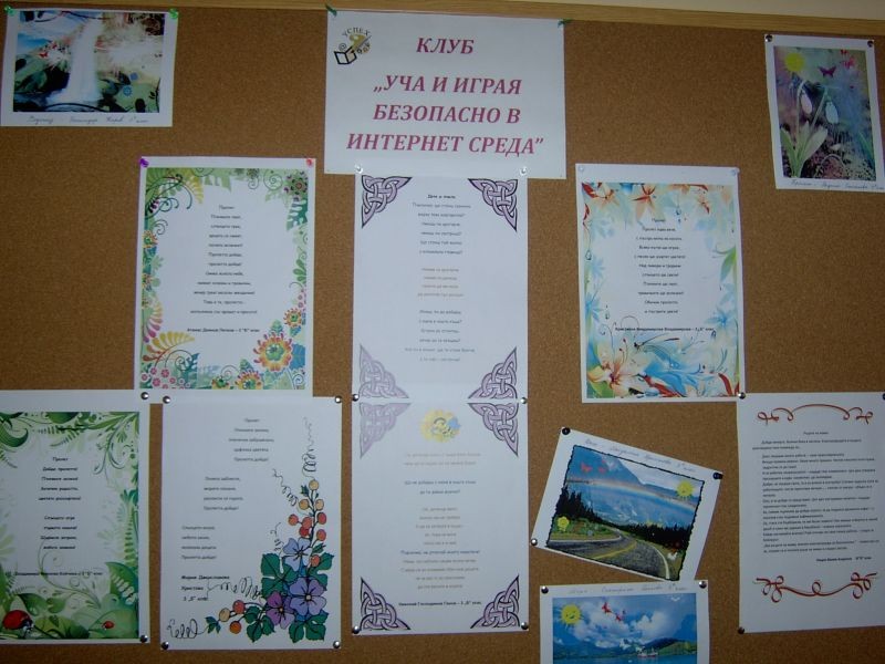 Стихоплетците от 3 "б" клас създадоха своите чудни пролетни творби. Съучениците им от клуб "Уча и играя безопасно в интернет среда" ги украсиха с причудливи рамки. Създадоха и пролетни колажи. Заедно подготвиха табло за пролетта.