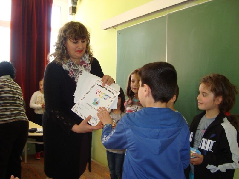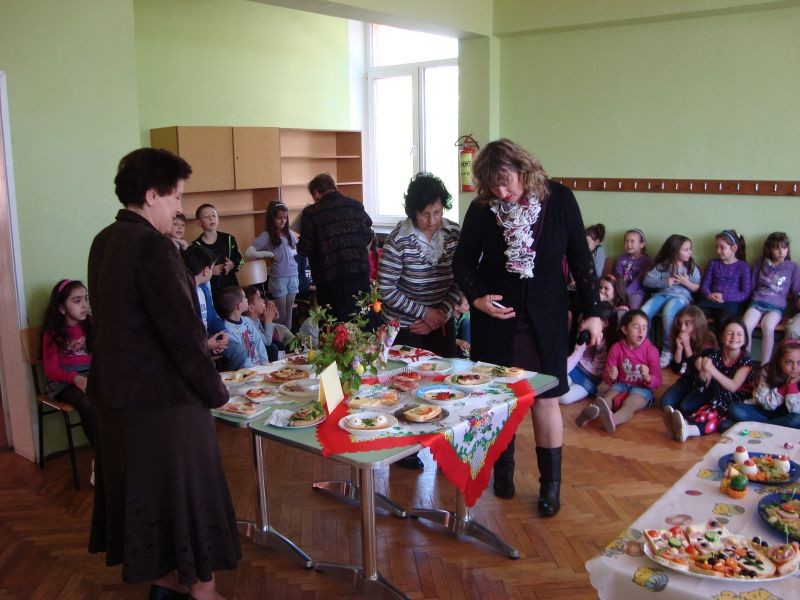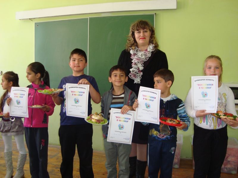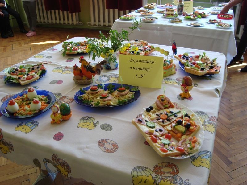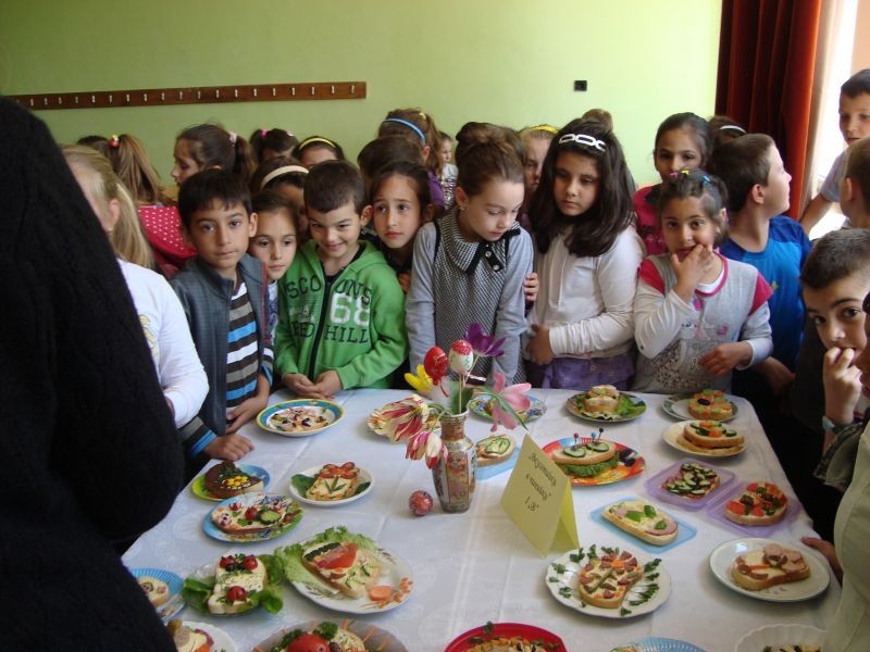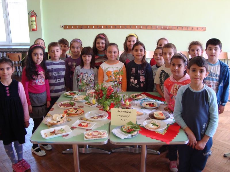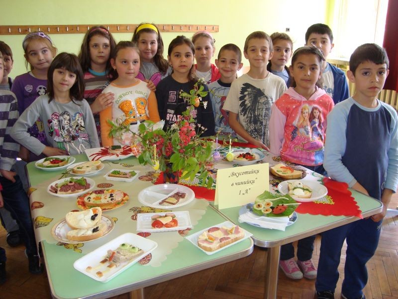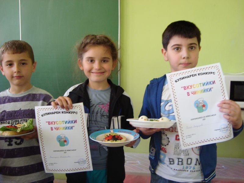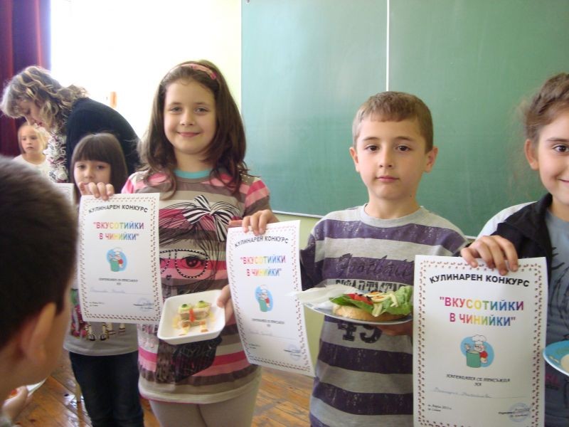 На 23.04.2013 г. се проведе кулинарен конкурс „Вкусотийки в чинийки” с учениците от първи клас. Всички участници проявиха голямо старание и въображение при изработването на красивите сандвичи. Беше подредена изложба от всеки клас. Журито в състав: г-жа Величка Христова, г-жа Лиляна Мурзова и г-жа Христина Генова беше много затруднено да излъчи победителите. За номинираните ученици имаше грамоти. А накрая всички се почерпиха с вкусните и красиви сандвичи.