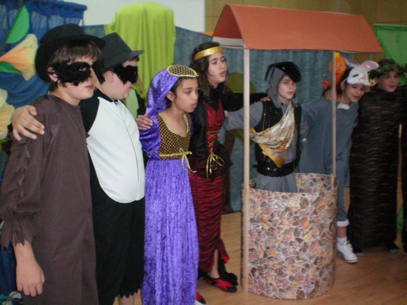 По традиция и тази година малките актьори от VІІ ОУ”Панайот Хитов”, участници в театралното студио към училището с ръководител Ваня Болградова, посрещнаха децата от подготвителните групи при ЦДГ „Папазян” и ЦДГ „Теменуга”. С радост им представиха постановката „Веселушко” и очароваха публиката с артистичното си изпълнение. Бъдещите първокласници с интерес изгледаха приключенията на добре познатите им от приказките герои: хитрата Лиса, глупавият кръвожаден Вълчан, безстрашното зайче Веселушко, плахата сърничка, забавните гарвани …. И за пореден път се убедиха, че добрите приятели са безценни в трудни моменти.