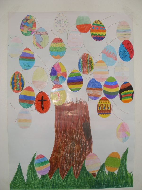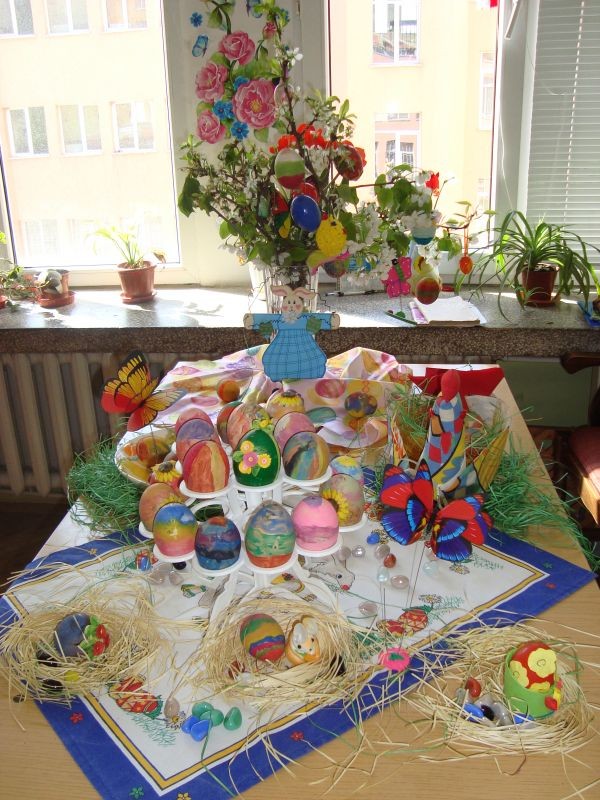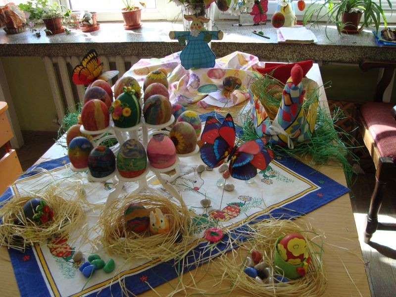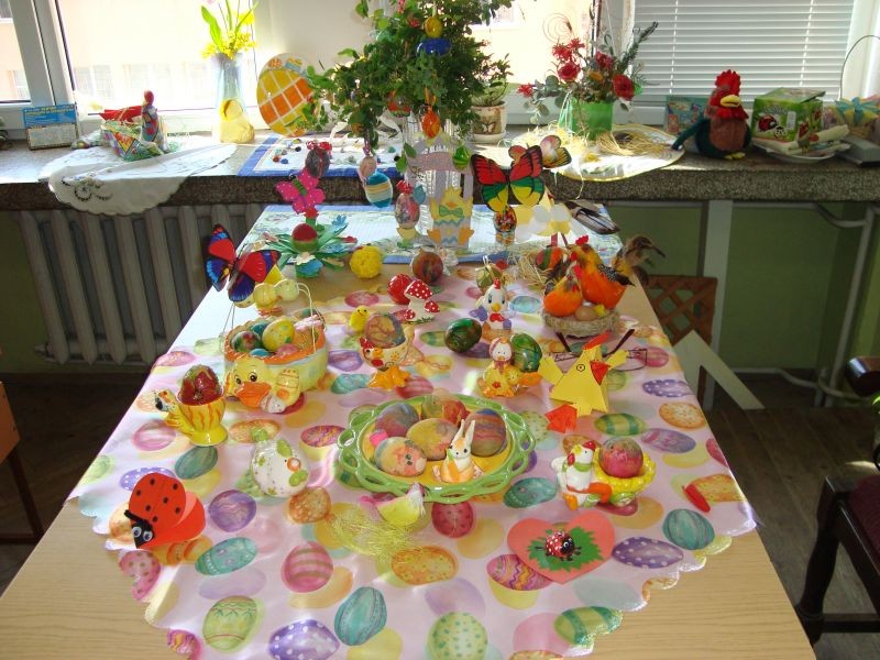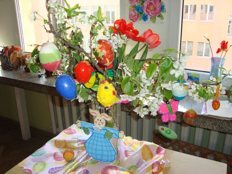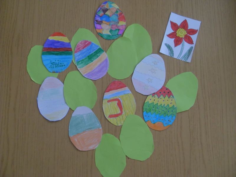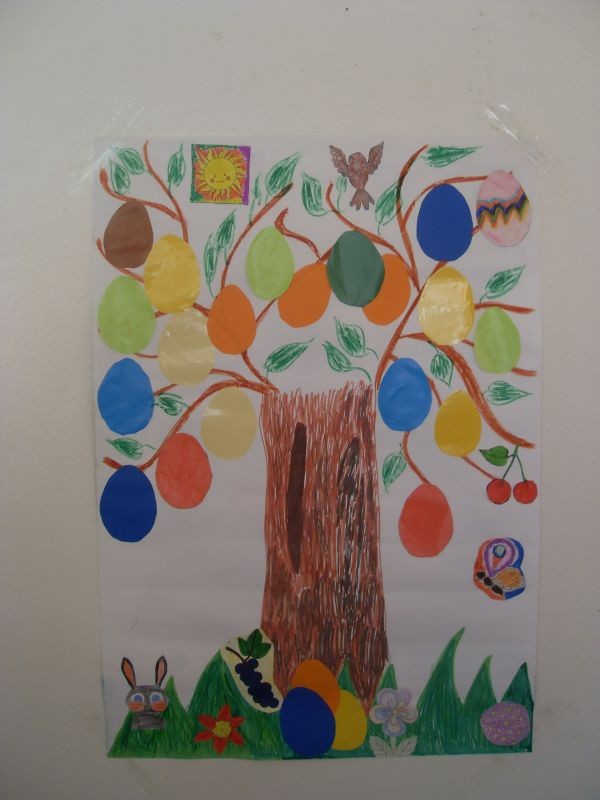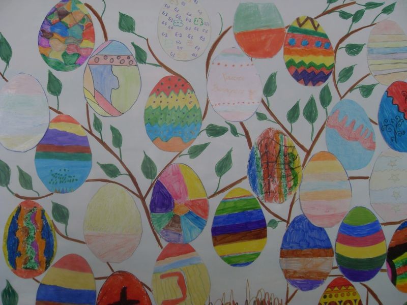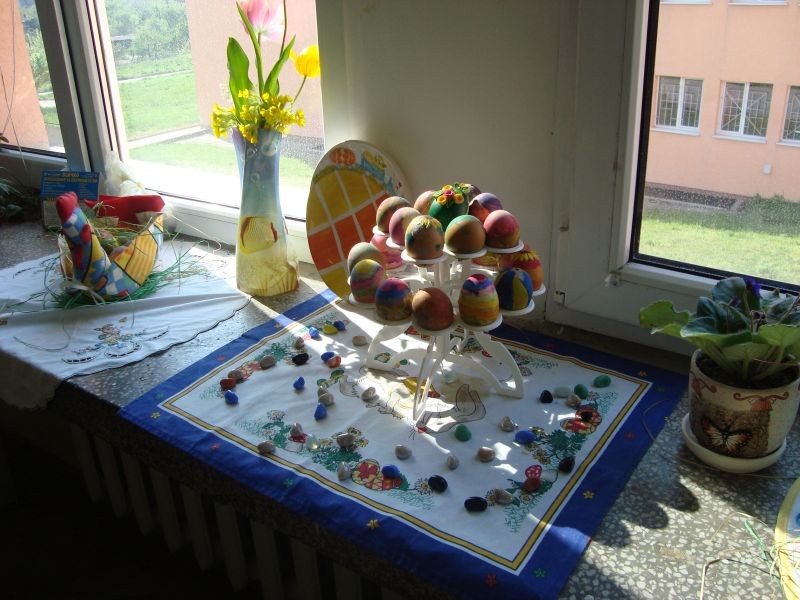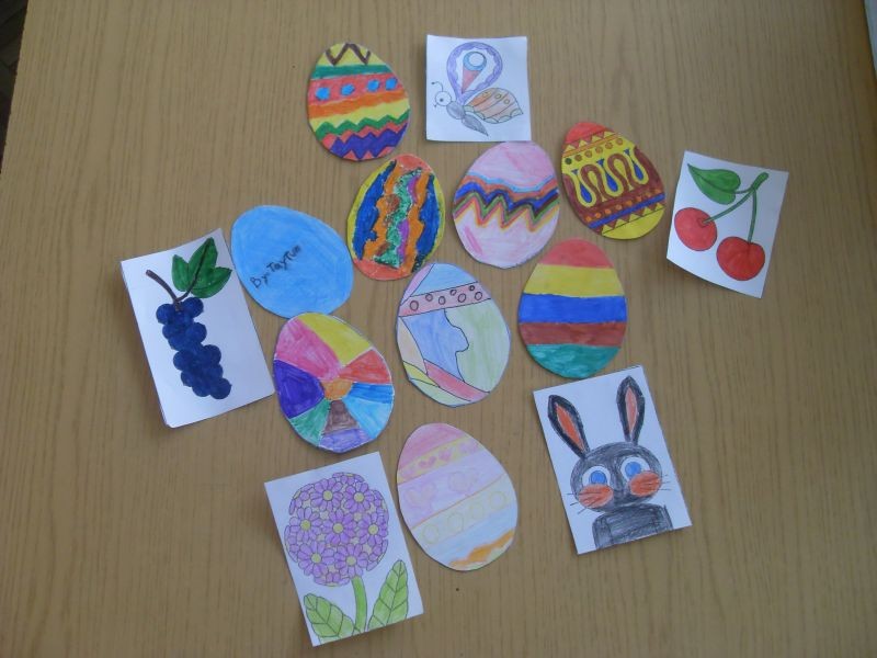 За големия християнски празник „Великден” учениците от начален етап с много любов, старание и сръчност в часовете по интереси следобед с помощта на възпитателките изготвиха красиви картички и подредиха изложба с великденски яйца.