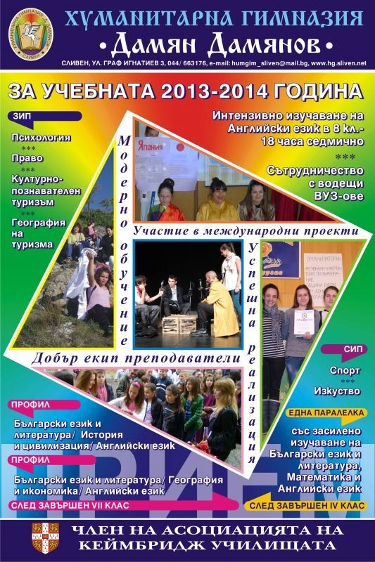 УВАЖАЕМИ РОДИТЕЛИ, ХУМАНИТАРНА ГИМНАЗИЯ ВИ ПРЕДЛАГА