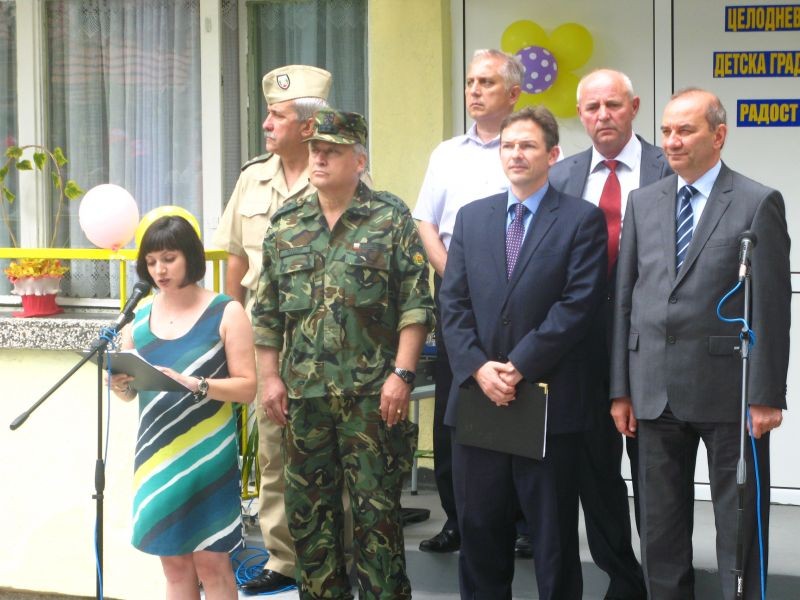 По-рано в Ямбол областният управител на Сливен присъства на церемонията по откриването на ремонтираното крило на ямболската детска градина „Радост”. Лентата беше прерязана от Марк Дилард - съветник по политическите и икономическите въпроси в Посолството на САЩ. Ремонтът е на стойност 25 500 лева, осигурени по Програмата за хуманитарна помощ на Министерството на отбраната на САЩ. Ремонтните дейности са извършени от 10 военнослужещи от 823 експедиционна ескадрила „Червен кон“ на ВВС на САЩ и девет военнослужещи от Българските сухопътни сили.