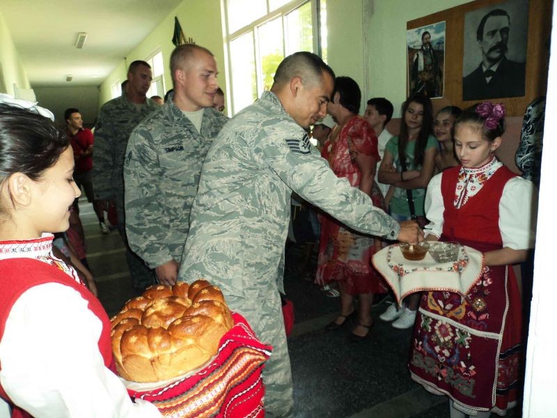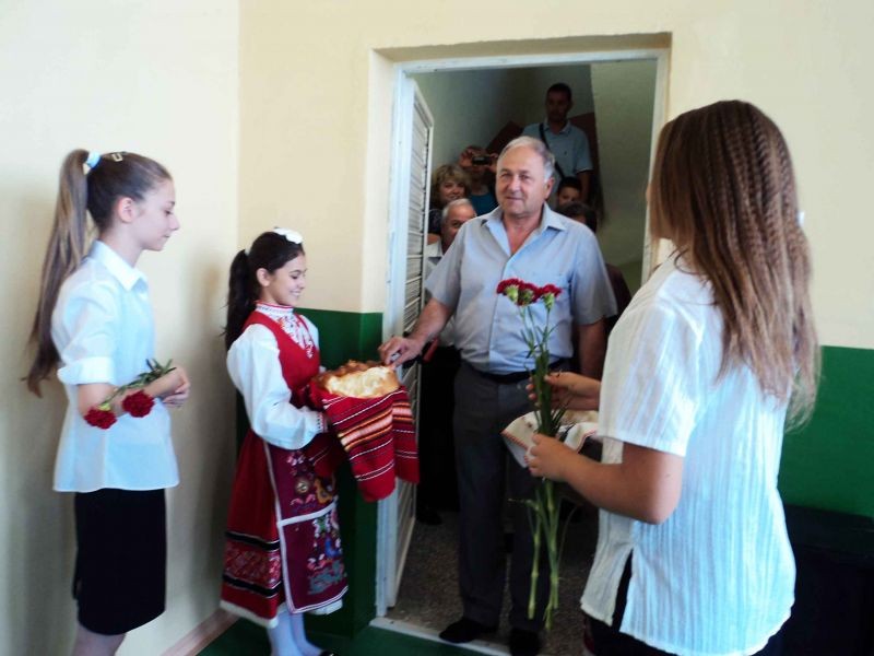 Гостите на тържествената церемония бяха посрещнати с традиционна погача и мед. и Децата от Седмо училище поздравиха гостите с народни и модерни танци.