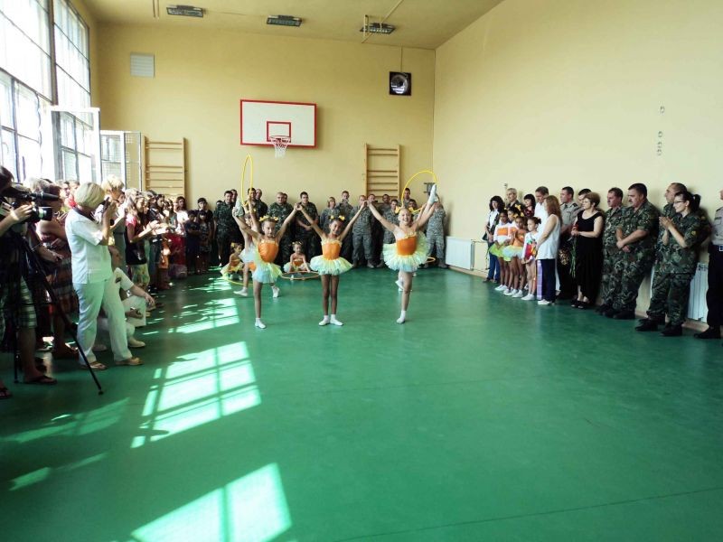 С огромна радост съобщаваме, че на 15 август бе открит напълно ремонтирания физкултурен салон на VІІ ОУ „Панайот Хитов”. Подобряването и оборудването на салона е в резултат на спечелен проект по Програма за хуманитарна помощ на Министерството на отбраната на САЩ , съвместно с американско-български военен екип, включващ осем американски военнослужещи от 823- експедиционна ескадрила ,,Ред Хорс’’ на Военновъздушните сили на САЩ и девет военнослужещи от Българските сухопътни сили. Ученици и учители са изключително доволни, че са спечелили тази така бленувана и нужна промяна, тъй като всички знаем колко важен и приятен е спортът за децата, своевременно с това колко безопасно трябва да бъде мястото, където те спортуват. Ремонтът на напълно обновения физкултурен салон е на стойност 26 000 лв., осигурени от Правителството на САЩ , в лицето на отдела за военно сътрудничество в Посолството на САЩ към Европейското командване на въоръжените сили на САЩ.