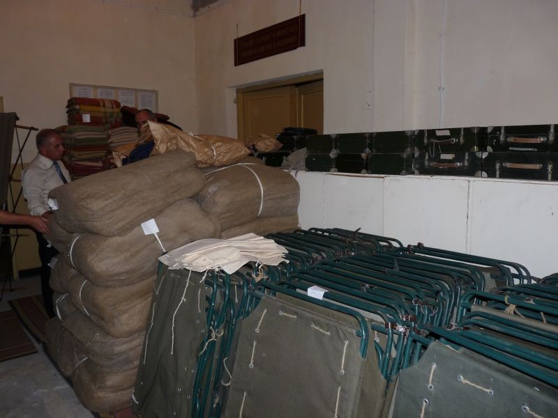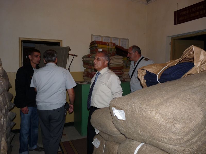 Целта на посещението беше да се направи преглед на наличността в базата. Там се съхраняват постелъчен инвентар: чаршафи, одеяла, възглавници, дюшеци, както и палатки, походни легла, дрехи, хавлии, медицинско оборудване, защитно облекло и др.
