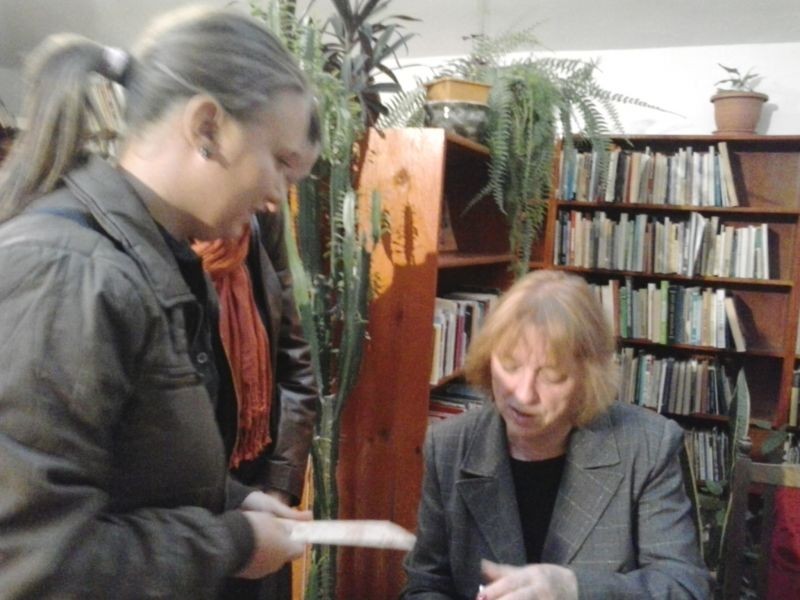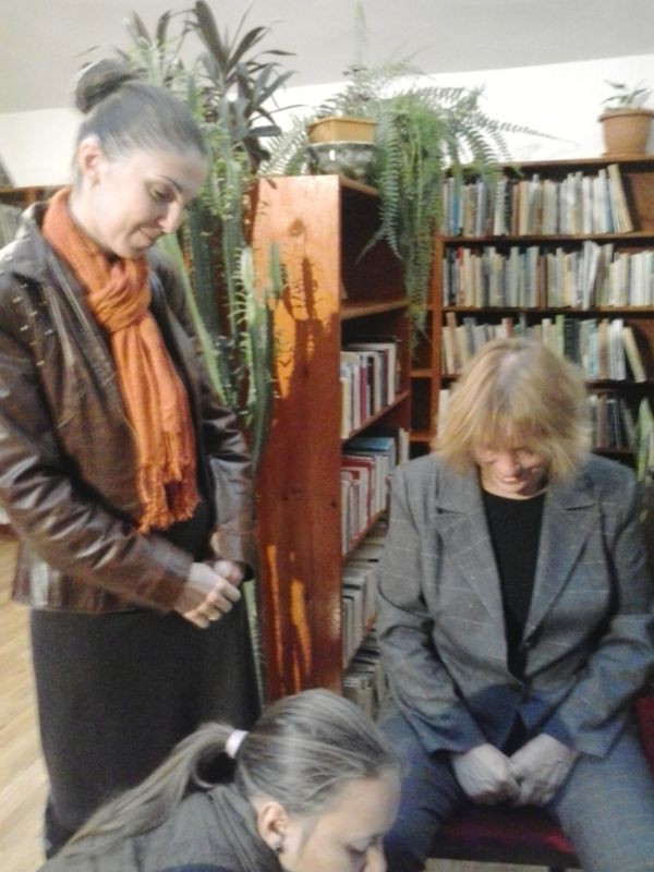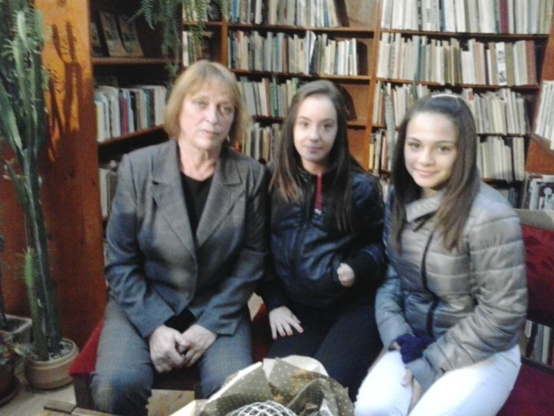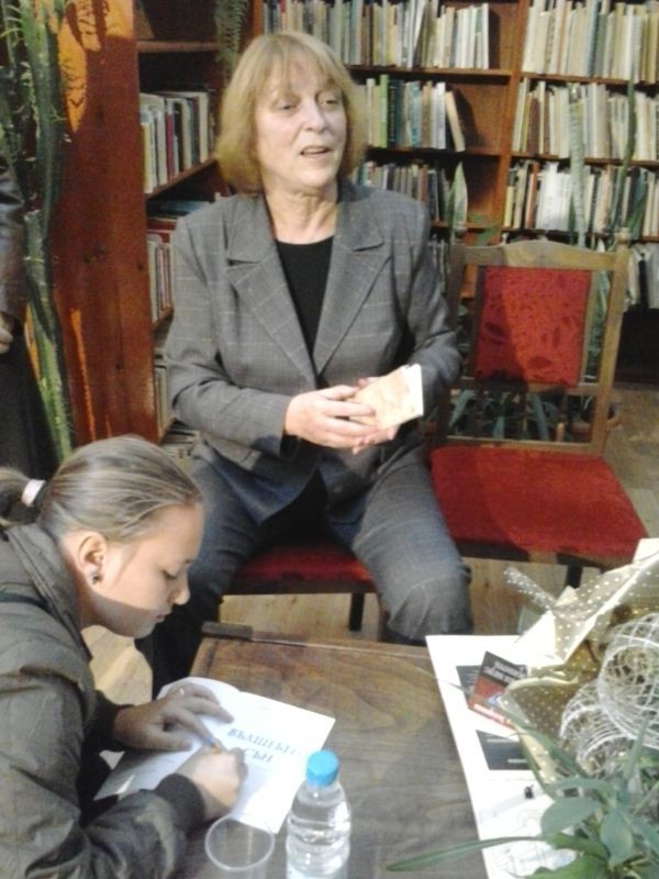 Ученици и учители на Хуманитарна гимназия се срещнаха с писателката и поетесата Надежда Захариева, съпруга на патрона ни Дамян Дамянов. Поводът за срещата беше премиерата на романа "Две очи любов", която се състоя на 1.10 2013 г. в Регионална библиотека "Сава Доброплодни" в рамките на Международния фестивал на изкуствата "Магията на вятъра". Писателката очарова младежката си публика със сюжета на романа си за "всички възрасти и четящи хора" и с неостаряващия си чар. Срещата завърши с обещание за нови скорошни срещи.