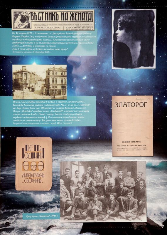 На 24.10.2013г. ученици от 9 б клас присъстваха в галерия "Миркович" на награждаване на участниците в Националния литературен конкурс , посветен на 120г. от рождението на Елисавета Багряна. Разгледаха с голям интерес документалната изложба, посветена на именитата ни поетеса и се срещнаха с Катя Зографова-директор на Националния исторически музей в София и автор на книгата "Играеща със стихиите", посветена на Багряна.
