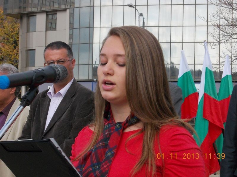 Нашите възпитаници Денислава Стойчева от 7а клас, Калояна Георгиева от 11б клас и Кристин Баджева от 11а клас споделиха своите мисли за будителството днес на площад “Хаджи Димитър”. Ето някои от тях: “Днес е празник! Празник на нашите будители, светци и писатели, на онези, смелите, които са загинали не за собствена слава, а за тази на България. Празник на учителите ни, пък и на всички други, допринесли за това, ние, младите сега да имаме красиви училища, в които да се учим на любов и вяра, да имаме букви и цифри, и пъстри учебници, които да ни издигат в науката. И книги! Прекрасни, мъдри книги! Аз на това най- много се радвам...Аз обичам да чета. Книгите са моето богатство, без тях съм нищо...Според някои от моите връстници, книгите не те правят стойностен, но аз мисля, че това, което те разбират под думата “книга” не е това, което разбирам аз... “ /Денислава, 7 клас/