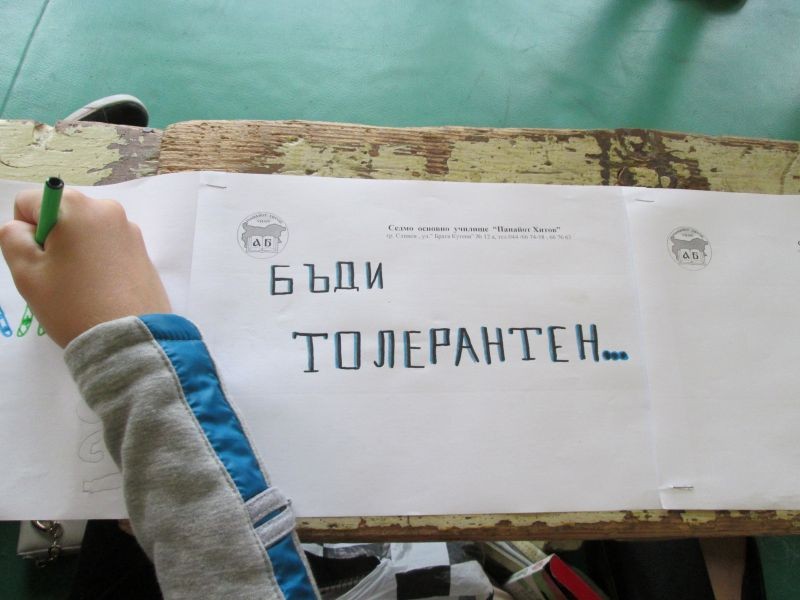 На 5 ноември, в часа на класа, ученици от I до VIII на VII ОУ "Панайот Хитов", изработиха най-дългото послание за толерантността.
