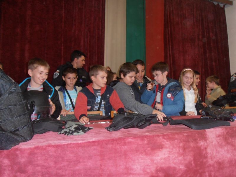 Учениците от 4 -ти класове на XII ОУ "Елисавета Багряна" се отзоваха на поканата. По време на мероприятието наблюдаваха демонстрация на полицейски автомобили на отделните структурни звена на ОД на МВР- Сливен пред сградата на РУ"Полиция"- Сливен. Разгледаха сградата на РУ "Полиция"- Сливен и се запознаха с работата на отделните структурни звена. Големи емоции предизвика демонстрацията на специализираното тактическо звено за бързи действия при ОД на МВР- Сливен на специализирана екипировка и снаряжение.