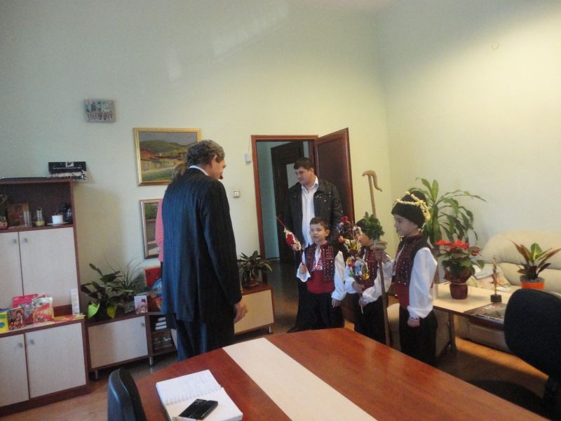 На 20.12.2013 г. Игнажден ученици от ОУ „Елисавета Багряна” – Сливен посетиха Община Сливен. Малките коледари и сурвакари отправиха благослов за здраве и берекет към Кмета на общината г-н Кольо Милев и Зам. кмета г-н Иван Славов.