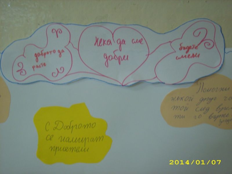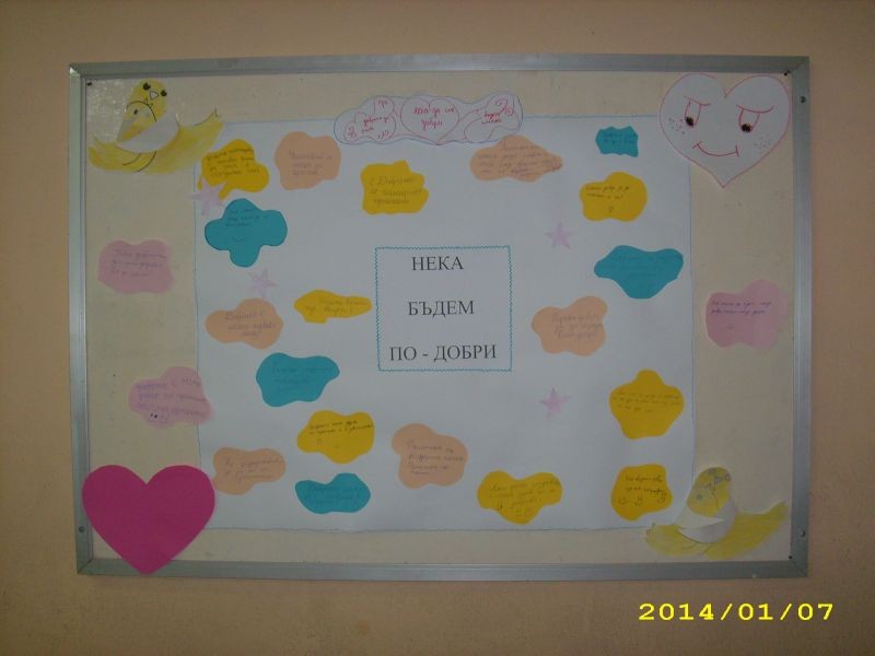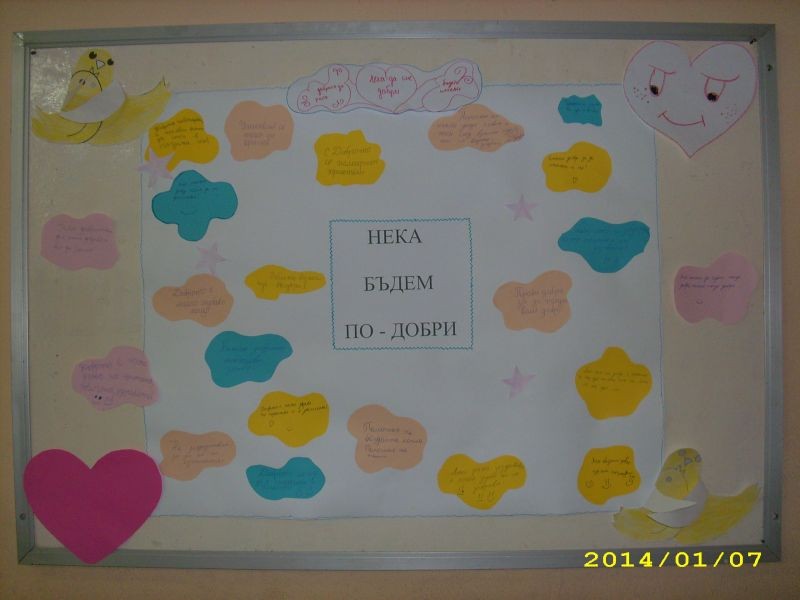Учениците от IV „а” клас в часовете по интереси, заедно със своята възпитателка г-жа Станислава Петкова изготвиха табло на тема: „Нека бъдем по-добри!”
