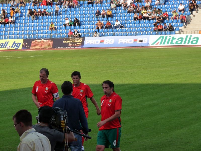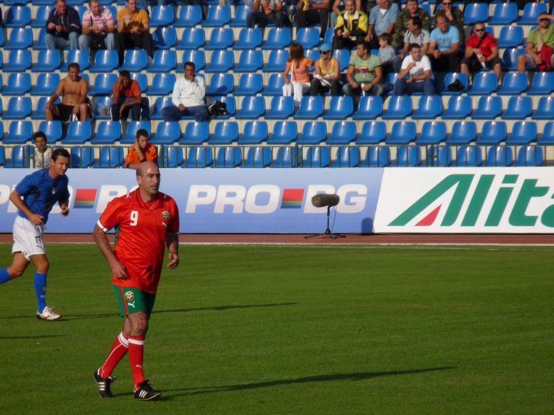 Министър Нейков използва случая да наблюдава срещата между ветераните на българския и италиански футбол.
