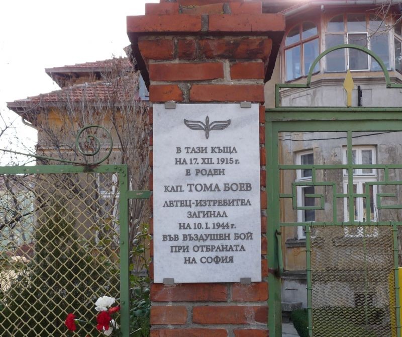 Тома Боев е от известен сливенски род, син на офицер и внук на първия избран от гражданите кмет на Сливен – Димитър Боев. Капитан Боев загива на 10.01.1944 г. при въздушен бой, защитавайки столицата София от бомбардировките на английски и американски самолети.