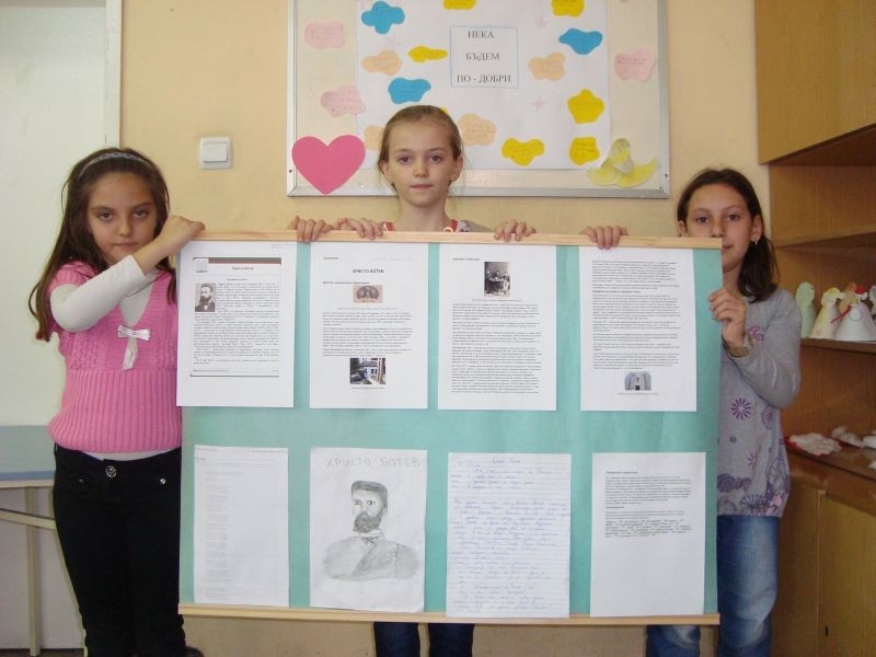 Патриотичното възпитание е част от възпитателният процес, който има за цел формирането на личността. В многовековната история на народа ни има с какво да се гордеем и пред кого да се преклоним. Учениците от начален курс с желание се включиха в инициативата за избор на патрон на всеки клас. Събраните материали бяха изложени на табла или красиво подредени в албум.