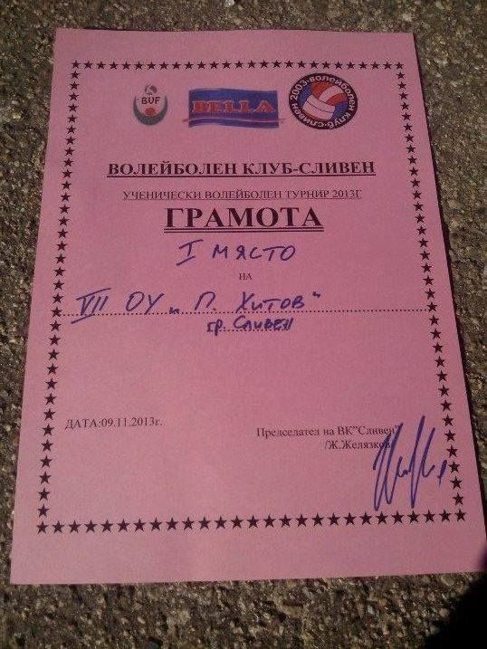 През ноември и декември 2013 година се проведоха два волейболни турнира за момичета, които нашите възпитанички спечелиха. Те се наложиха над всички свои съпернички по системата "Всеки срещу всеки". Призове за най-полезен играч в турнирите спечелиха отново нашите волейболистки Андрияна Стоянова и Таня Персафова.