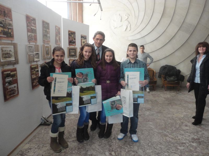Учениците Антония Колева от V”в” клас, Йоана Колева от V”в” клас, Росен Стойнов от V”б” клас и Габриела Иванова от VІ”а” клас получиха своите заслужени награди от г-н Иван Славов, заместник кмет „Хуманитарни дейности” на община Сливен.