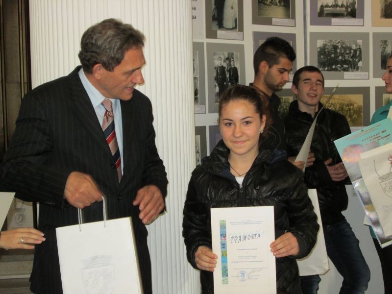 На 22 януари в зала "Май" бяха наградени участниците в конкурса "Моя страна, моя България", организиран от Общински съвет по наркотични вещества и Превантивно-информационен център - Сливен. Чудесно се представиха нашите ученички Анита Танева - с графиката "Не на наркотиците" и Гергана Карадраганова - с есето "Вредата от наркотиците". Те получиха заслужени грамоти и награди от г-н Иван Славов - заместник кмет на община Сливен.