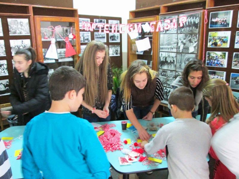 По случай 1 март, възпитаниците на нашето училище организираха мартенски базар. Ученици от всички класове представиха мартеници, които сами са направили в часовете по домашен бит и техника и изобразително изкуство.
