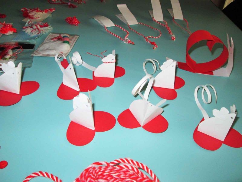 Изработването на традиционната мартеница с бели и червени кончета доставя удоволствие на малки и големи, които с нетърпение очакват идването на Баба Марта, за да се закичат за здраве и късмет.