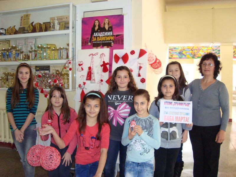 Учениците от клуб „Сръчни ръце” с ръководител г-жа Лиляна Мурзова ви честитят празника Баба Марта, като ви пожелават много здраве, много щастие, радост, късмет и сбъднати мечти.