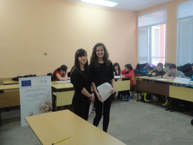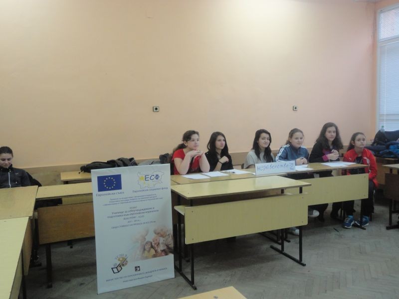 На 04.03.2014 г. клуб „Математика за всеки” с ръководител Елена Льолева проведе представително занятие – състезание „Стани отличник”. Учениците бяха разделени на два отбора – отбор ”Уравнение” и отбор „Неравенство”. Победител стана отбор „Уравнение”. Членовете му се справяха по-бързо в различните ситуации. Учениците с голямо желание се състезаваха и показаха много добри знания, умения и работа в екип.