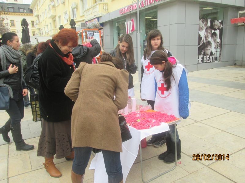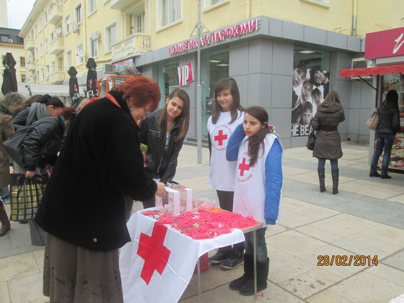 Традиционно и тази година младите доброволци от Хуманитарна гимназия при клуб „Безвъзмездна помощ” към БМЧК, Сливен се включиха в акцията за продажба на мартеници.