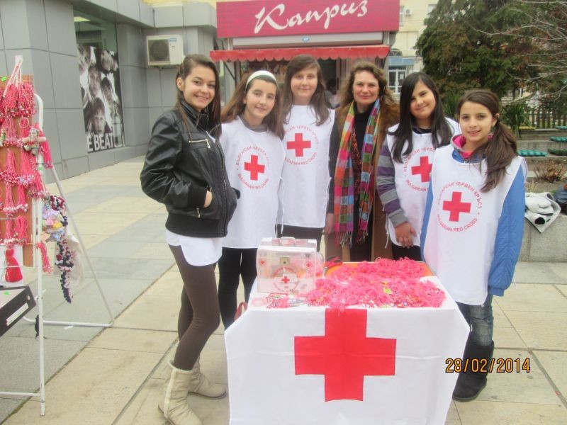 Традиционно и тази година младите доброволци от Хуманитарна гимназия при клуб „Безвъзмездна помощ” към БМЧК, Сливен се включиха в акцията за продажба на мартеници.