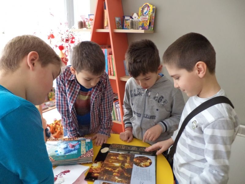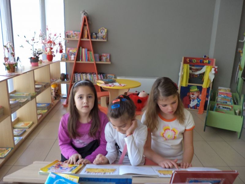 В съботния ден на 15.03.2014г. учениците от клуб "Приказен свят"-1"а" клас, водени от г-жа Емилия Даскалова, посетиха окръжна библиотека "Сава Доброплодни". Разгледаха всички отдели в библиотеката, но най-дълго се задържаха в детския отдел. Атмосферата много им хареса. Изборът на книжки не беше лесен, защото на всички рафтове са подредени много книги. Първокласниците вече имат своите първи читателски карти и желанието да прочетат много интересни и забавни книжки.