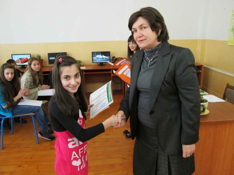 Наградите бяха връчени от г-жа Виолета Пенчева, Директор на училището, която пожела много бъдещи успехи на малките литератори.