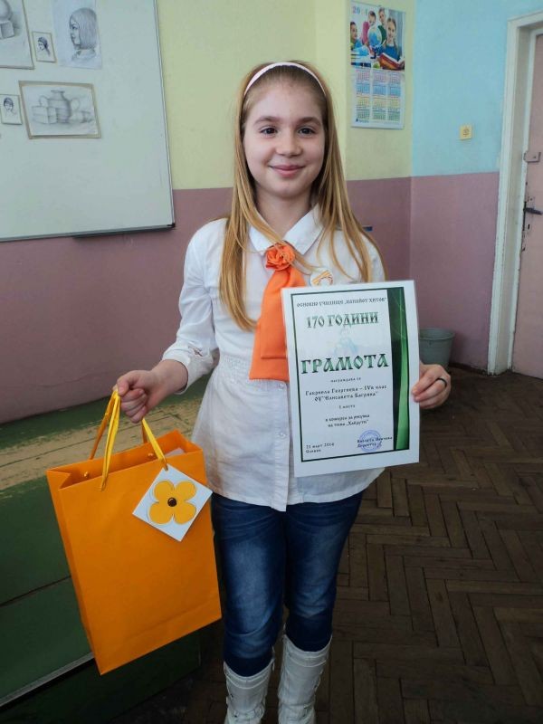 Всички участници се представиха отлично, но първо място заслужено спечели Габриела Георгиева от ІV „в” клас при ХІІ ОУ „Елисавета Багряна”.