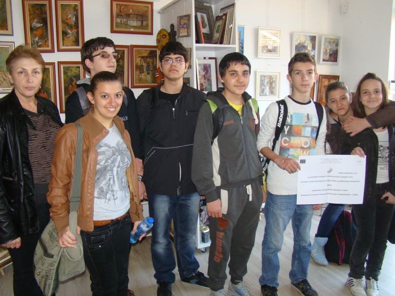 На 21.03.2014г. ученици от ХГ „Д. Дамянов“, работещи по проект „Успех“, секция „Вълшебният свят на словото“, посетиха Арт галерия. Г-жа Дора Куршумова сподели, че галерията съществува от 2 год. В нея представят своите картини художници като Петър Кайраков, Данелина Косева, уникална изработка върху естествена коприна, стил, импресионизъм. Запознати с импресията като жанр на словесното изкуство, учениците бяха изненадани от „говора на мълчанието“ в картините „Хвърчащите хора“ на Дора Куршумова. Одухотворените цветя и пейзажи в галерията разтвориха усмивки и хвърчащи пролетни мечти в душите.