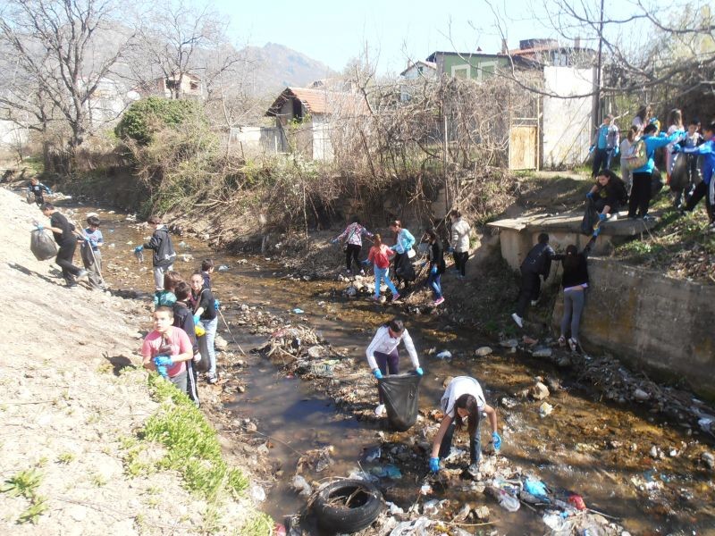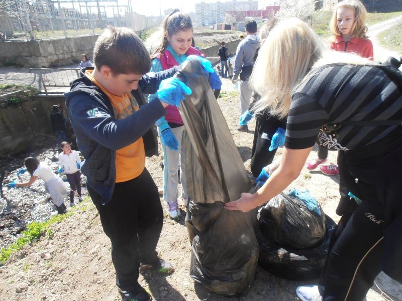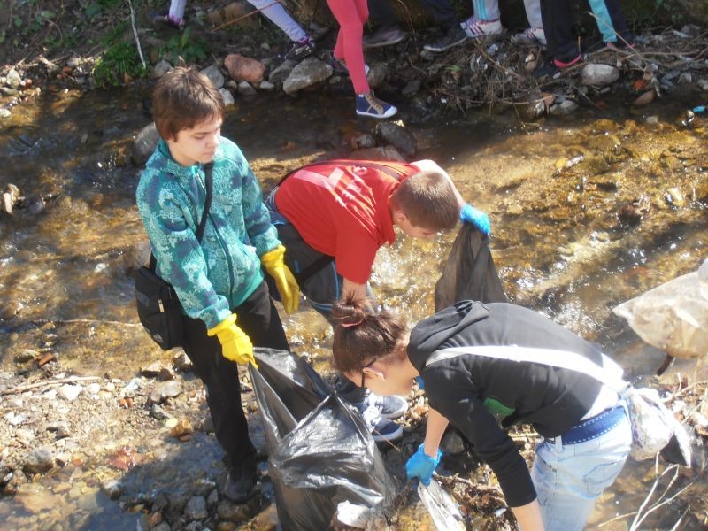 С много ентусиазъм 50 ученици, участници в клубовете по проект „Успех” и техните ръководители от ОУ ”Елисавета Багряна”, гр. Сливен почистиха коритото на Дюлева река.
