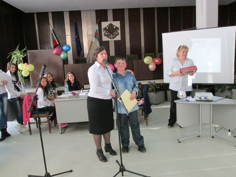 На 19.03.14 г. в зала "Май" се състоя природоматематическо състезание, организирано от ОУ "Панайот Хитов" по случай юбилея на училището. В състезанието взеха участие и отборите на СОУ "Константин Константинов" и ОУ "Елисавета Багряна". След много оспорвани и забавни игри, нашият отбор успя, с минималната разлика от 1 точка преднина, да спечели състезанието.
