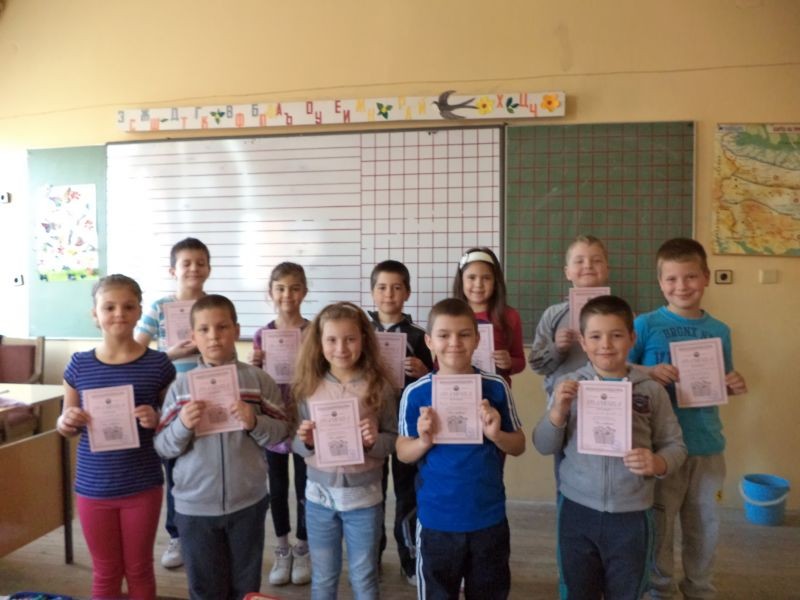 Първокласниците обичат да се съревновават. Ученици от I "а" клас участваха в състезанието "Аз и буквите" и се представиха достойно. Радват се, защото грамотите им се увеличават.