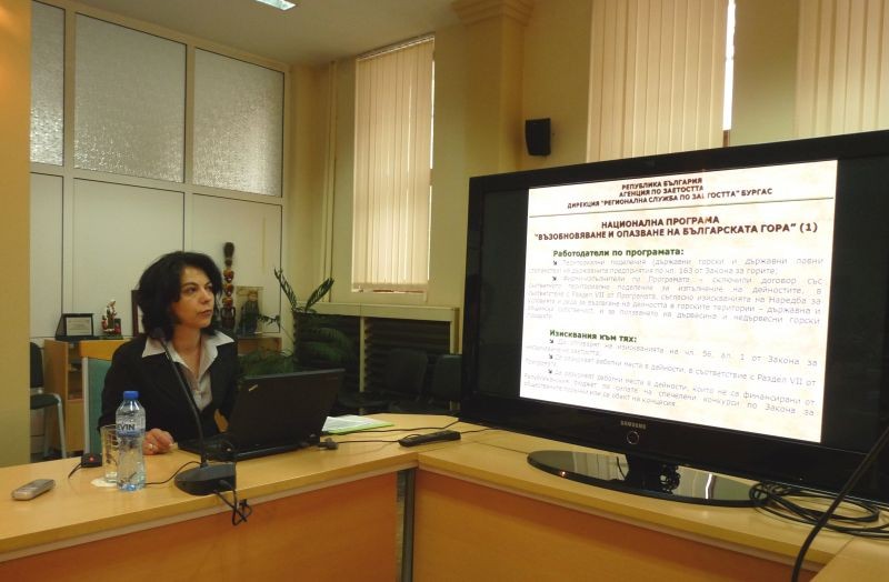 Г-жа Елена Хвойнева – началник отдел в Дирекция „Регионална служба по заетост“ – Бургас, представи основните параметри на четири нови програми от Националния план за действие по заетостта (НПДЗ 2014):