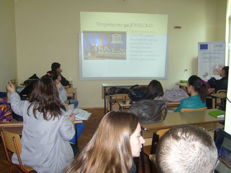 Във връзка с отбелязване на 18.04- МЕЖДУНАРОДЕН ДЕН ЗА ОПАЗВАНЕ НА ПАМЕТНИЦИТЕ НА КУЛТУРАТА,клуб "Културен туризъм" с ръководител Т. Станчева проведе представителна изява на тема "Културно- историческо и природно наследство в България, под закрилата на ЮНЕСКО.