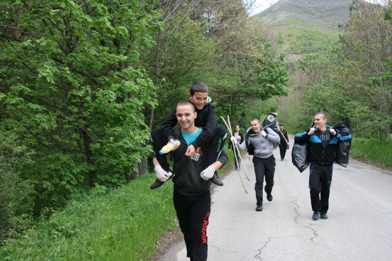 На 26 април ученици и учители от ХГ „Д. Дамянов“ се включиха в инициативата „Да изчистим България за един ден“. По покана, отправена от Дирекцията на Природен парк „Сините камъни“, заедно почиствахме в местността Абланово и събрахме повече от 20 чувала с битови отпадъци.