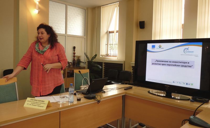 На 25.04.2014 г. в областна администрация Сливен се проведе семинар-обучение за представители на медиите, на браншови организации, социално-икономически партньори, работодателски организации. Темата беше „Привличане на инвеститори и развитие чрез европейски средства“, а лекторът - Златина Карова - ръководител звено „Център за трансфер на технологии и проектна дейност“ в НИС на СУ „Св. Климент Охридски“.