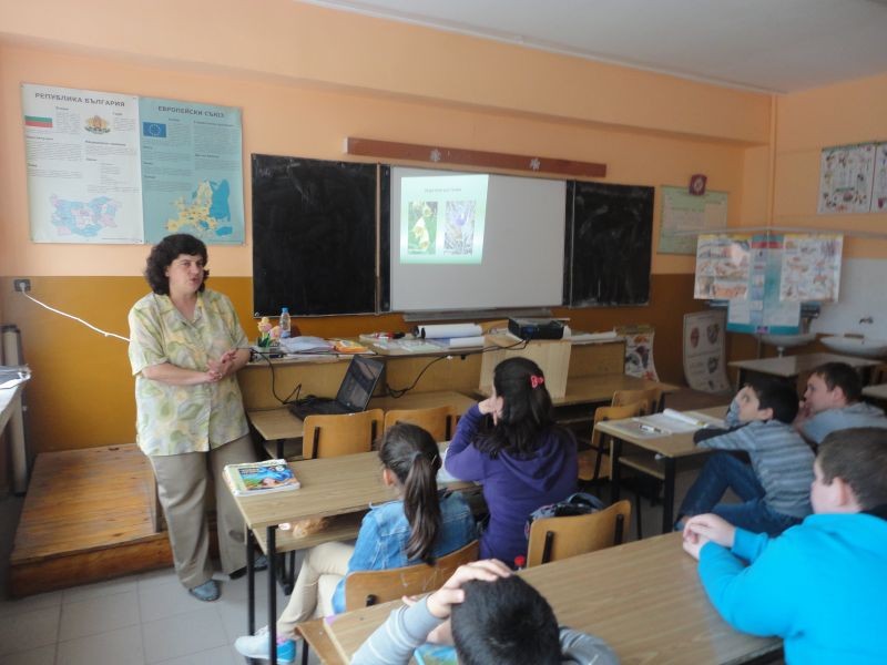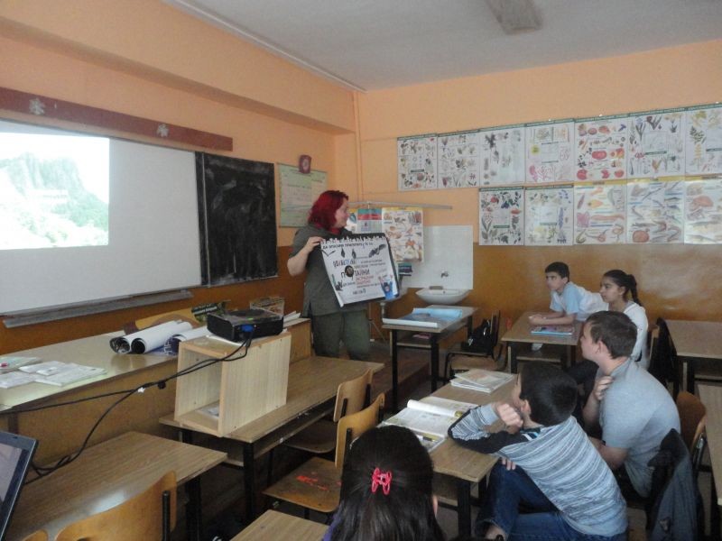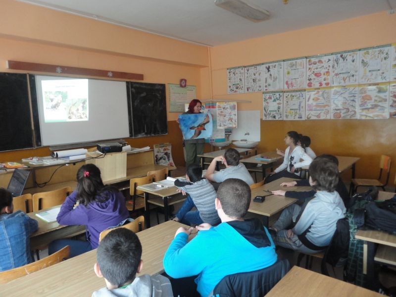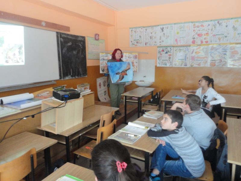 По повод традиционните "Дни на Багряна" на 29.04.2014 г. учениците от VІ "б" клас се срещнаха с еколози от "Зелени балкани". Темата на срещата бе: "Научете как да помогнете за завръщането на лешоядите". Лектори еколози от град Стара Загора и гр. Сливен увлекателно разказаха за защитените видове лешояди и тяхното изчезване като популация. Представиха интересна презентация на тема: "Изчезващи и защитени видове растения и животни в парк "Сини камъни". Учениците получиха много нагледни материали и брошури. Бяха подарени нагледни цветни плакати за училището.