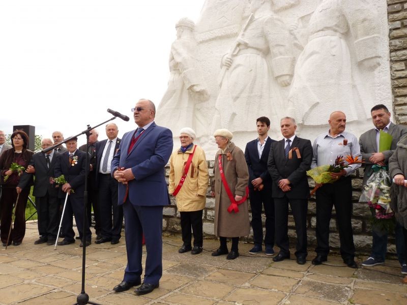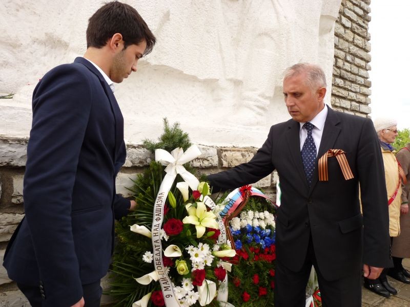 Денят на победата почетоха депутатът в Европейския парламент Евгени Кирилов, областният управител Корнелий Желязков и заместващият го „За един ден“ Станимир Грозев, кметът на община Сливен Кольо Милев, общински съветници, ветерани от войната, представители на граждански организации от града и др.