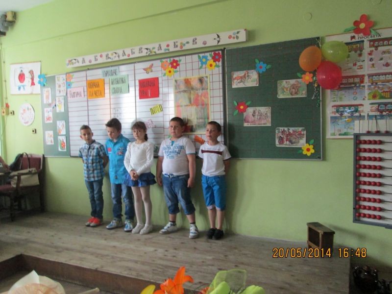 На 20.05.2014 г. първокласниците изнесоха своите тържества по случай приключването на учебната година. Своите артистични умения малките ученици показаха в драматизациите, песните и стиховете, а публиката бурно ги аплодира. За своите знания и умения всички получиха Удостоверения за завършен първи клас, които им бяха тържествено връчени от класните ръководители. Г-жа Христова, директор на нашето училище пожела на малките ученици здраве, успехи и още по-високи резултати в учебната дейност.