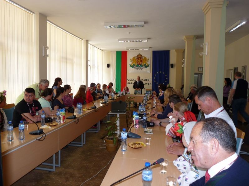 Ваня Шишкова – началник отдел „Образование, култура и вероизповедания” в община Сливен, представи на областния управител участниците. Домакин и гости си размениха подаръци.