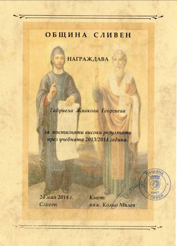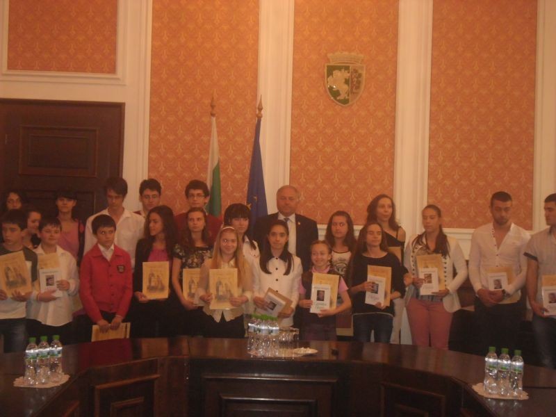 На 24 май в 12ч. кметът на Община Сливен – г-н Кольо Милев посрещна в официалната зала на общинската администрация 35 ученици от Община Сливен, завоювали първи места от национални и международни конкурси и състезания. В присъствието на директори на училища, родители и приятели кметът им връчи грамоти и книги за постигнати високи резултати през учебната година.