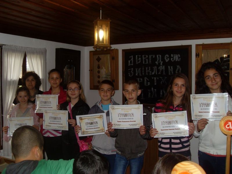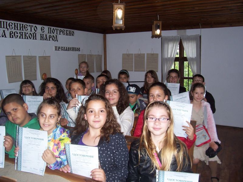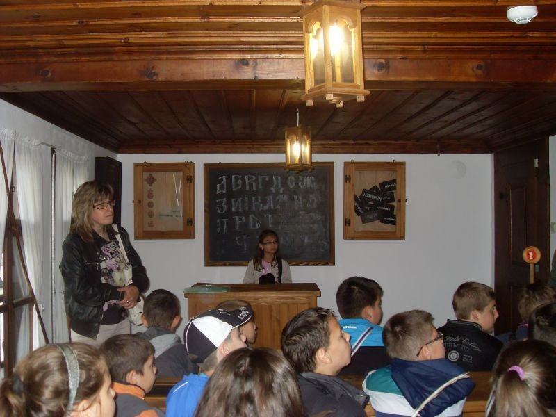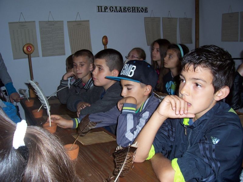 Голямо преживяване за всеки от трите класа бе посещението в Тревненското школо. Да седнат на дългите дървени пейки, да напишат нещо в пясъка, да пипнат перата от мастилниците, да прелистят пожълтелите страници на старите учебници бе преживяване, което ще запомнят през целия си живот.